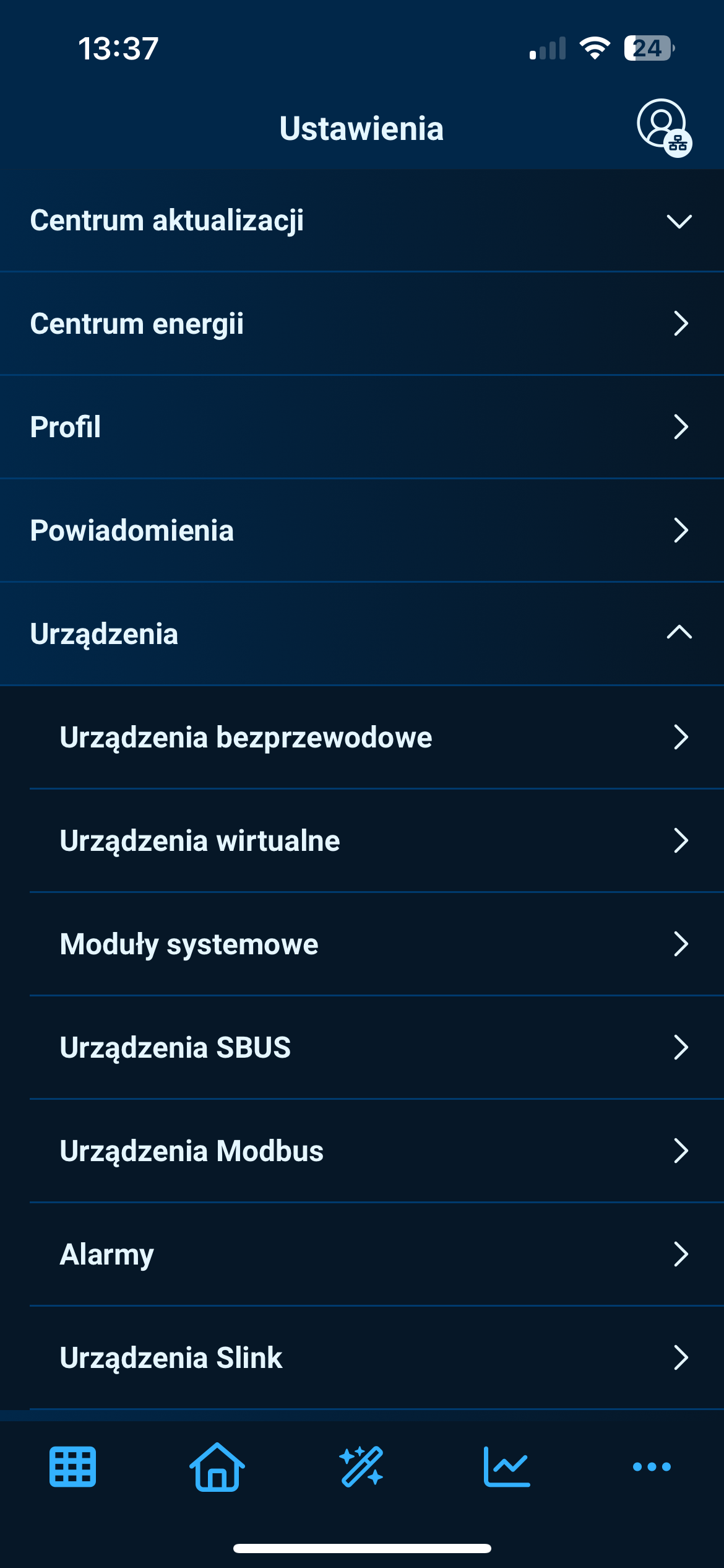 Wejdź w Ustawienia → Urządzenia → Urządzenia SBUS.