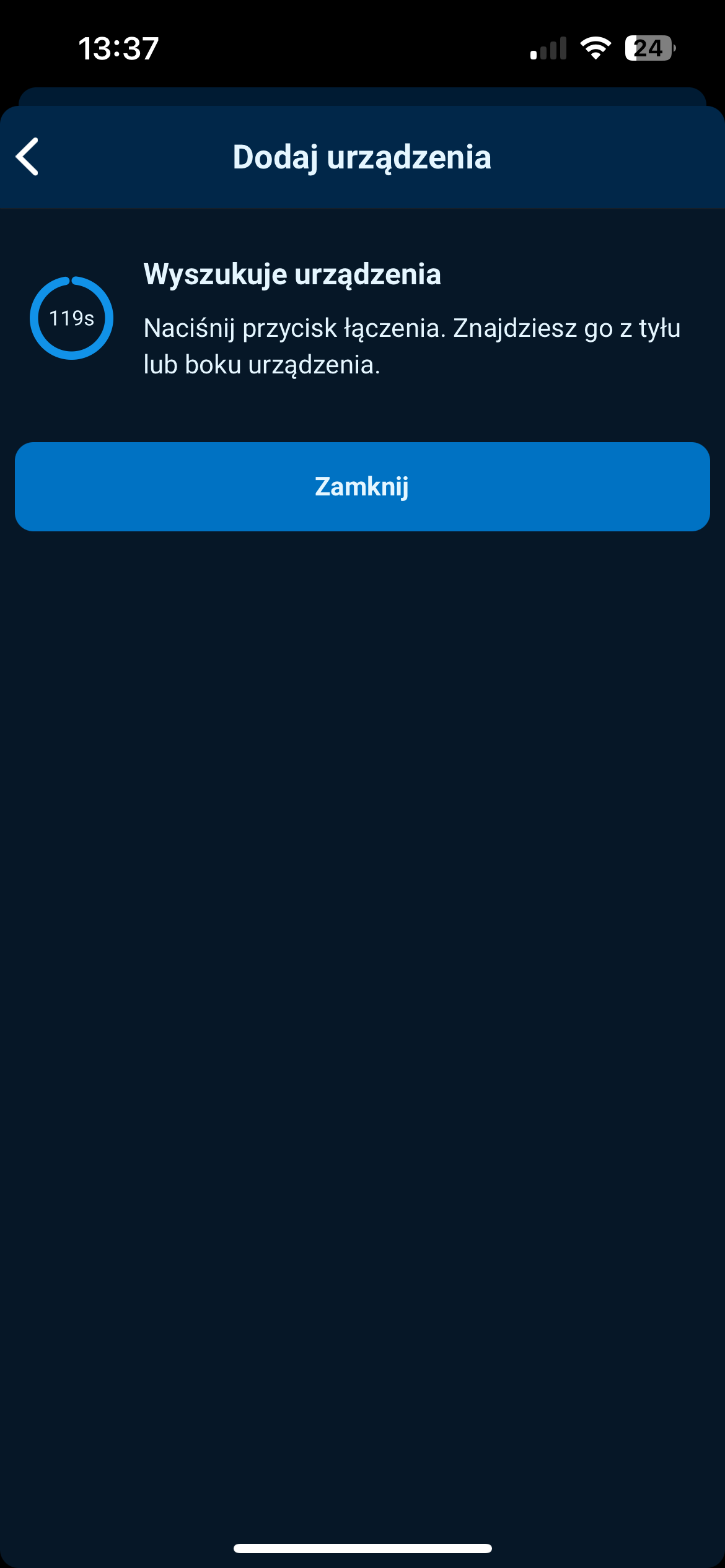W tym czasie naciśnij przycisk parowania na urządzeniu, które chcesz dodać do centrali.