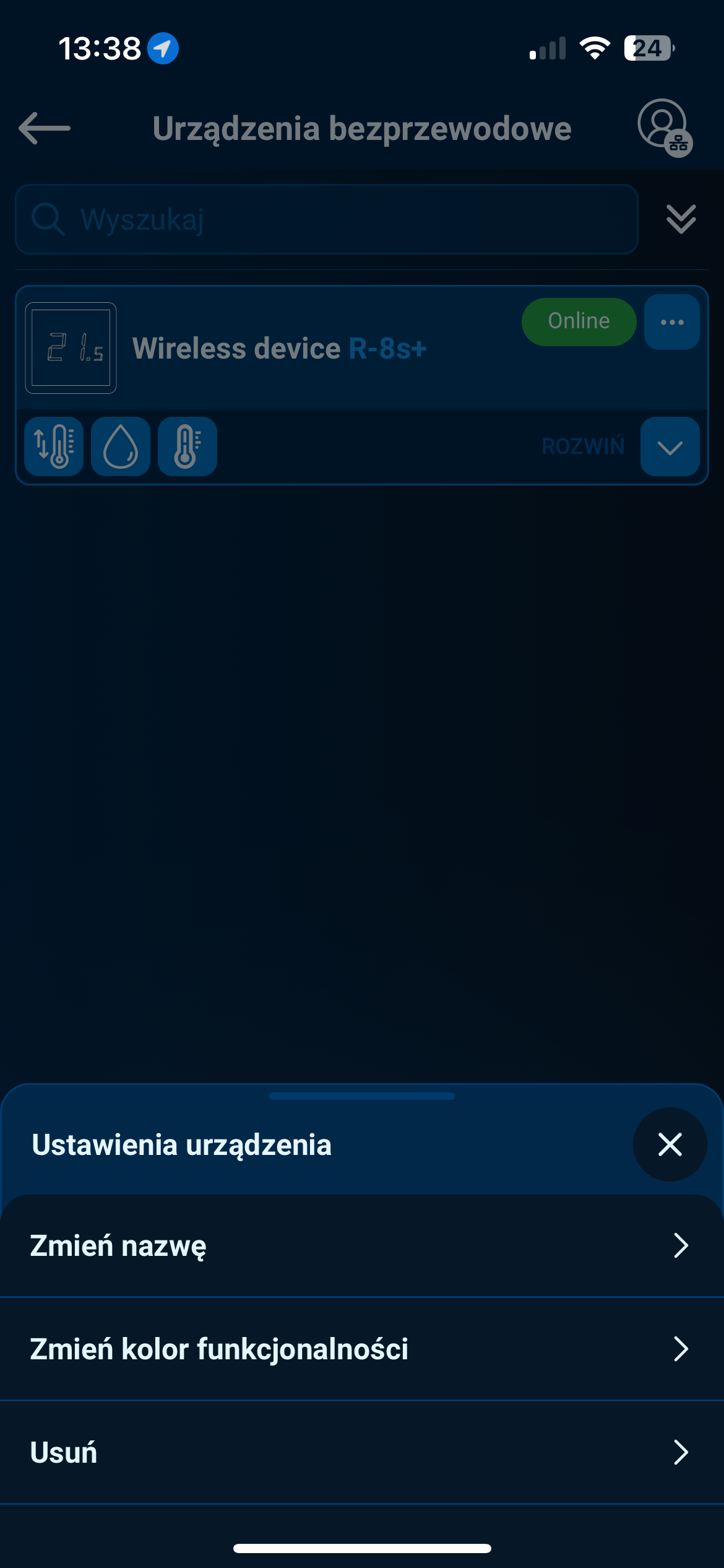 Kliknij ikonę trzech kropek w prawym górnym rogu kafelka urządzenia.