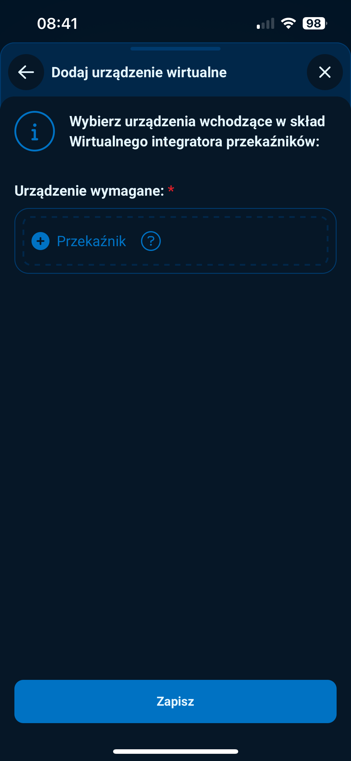 Wybierz typ urządzenia: Wirtualny integrator przekaźników.