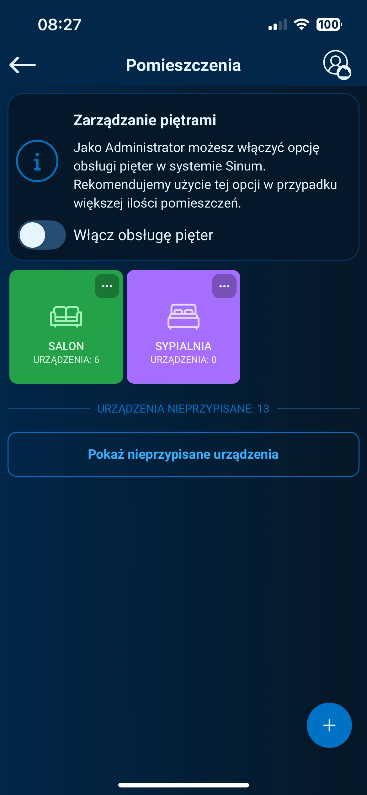 Przejdź do: Ustawienia → Pomieszczenia.