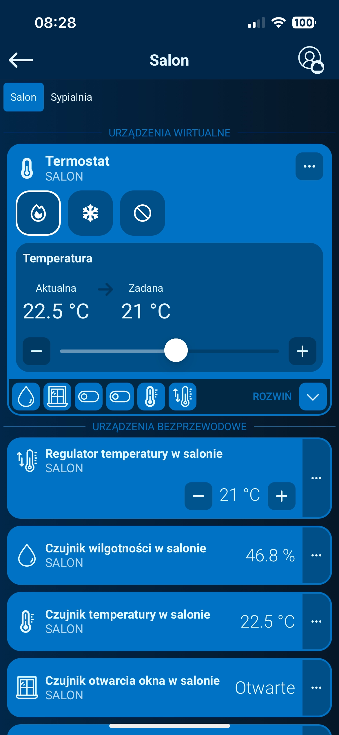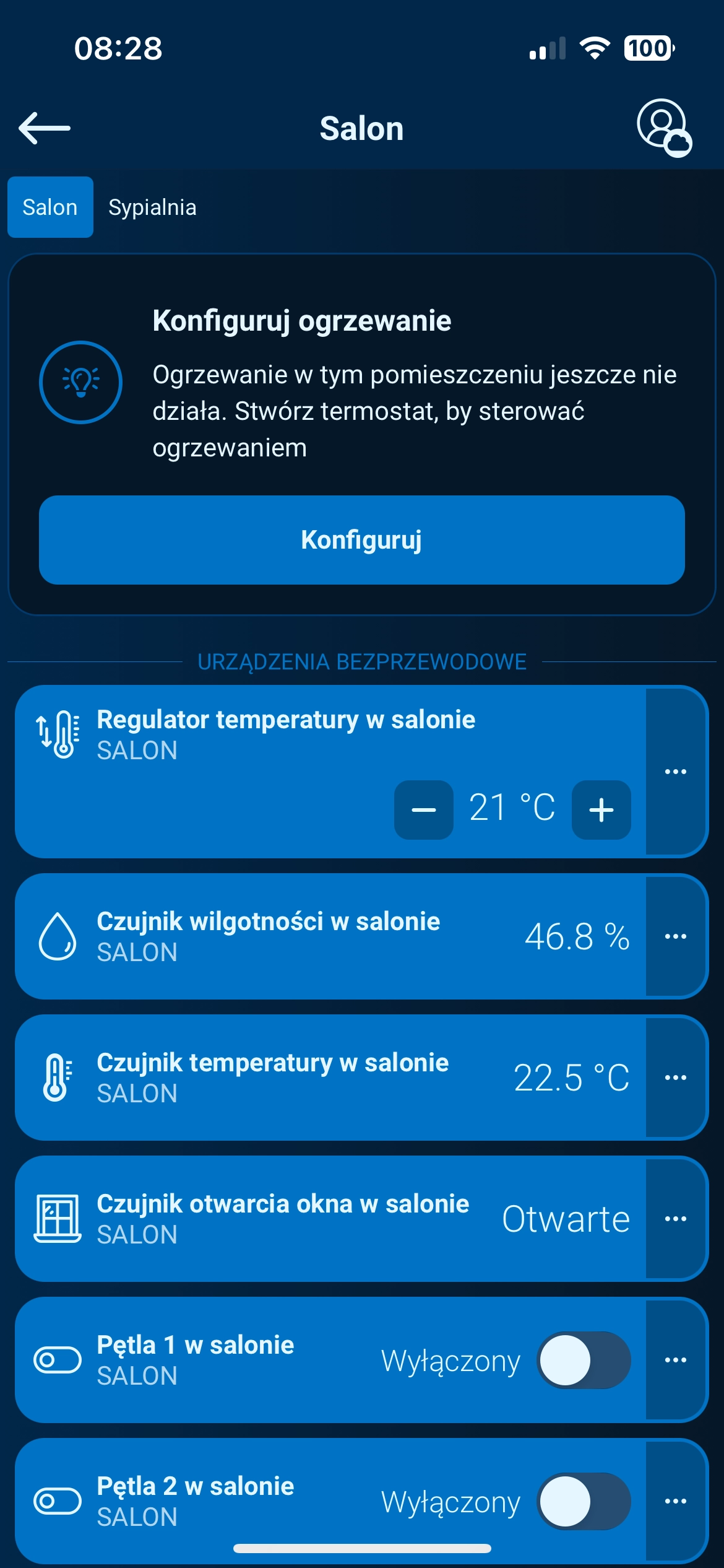 Wybierz pomieszczenie, w którym chcesz skonfigurować ogrzewanie.