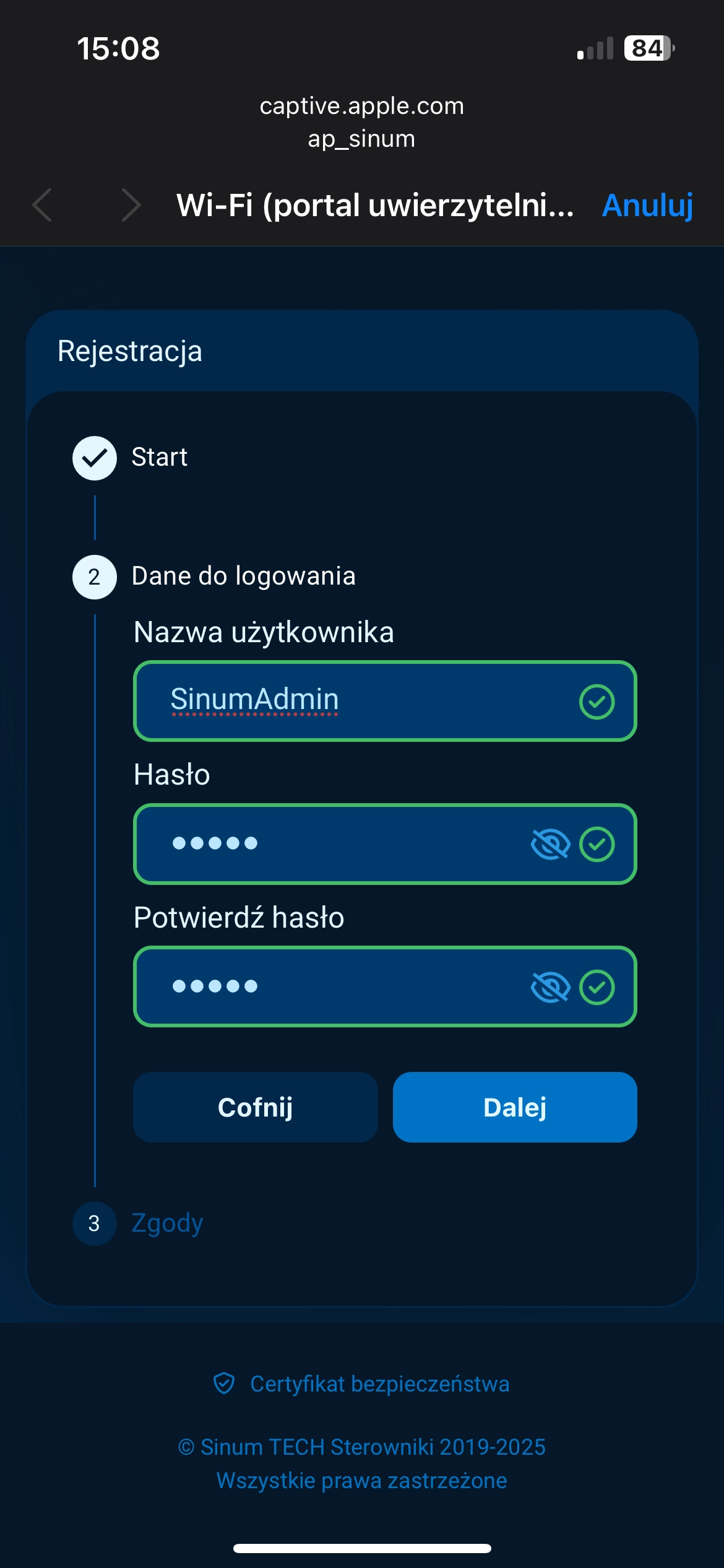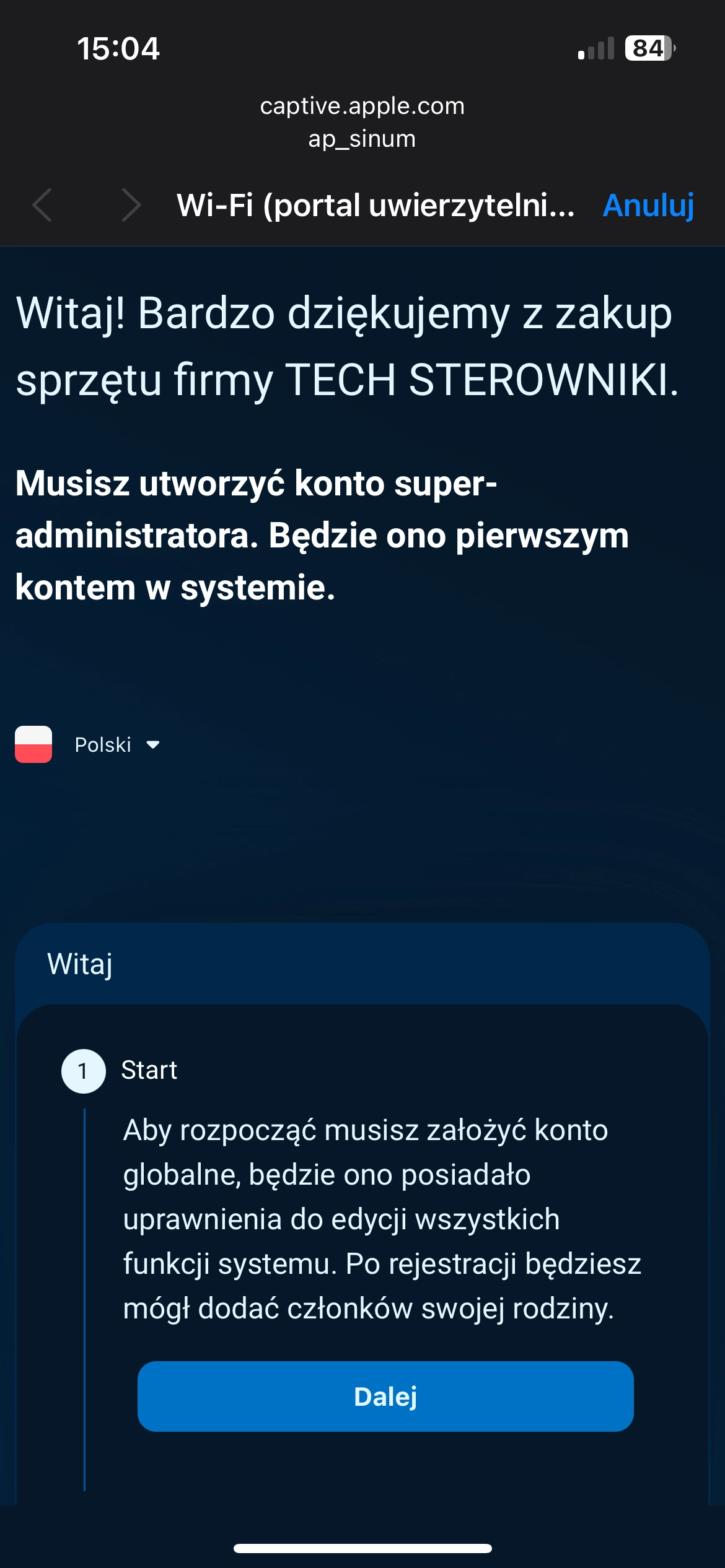 Po połączeniu z siecią pojawi się portal konfiguracyjny.
