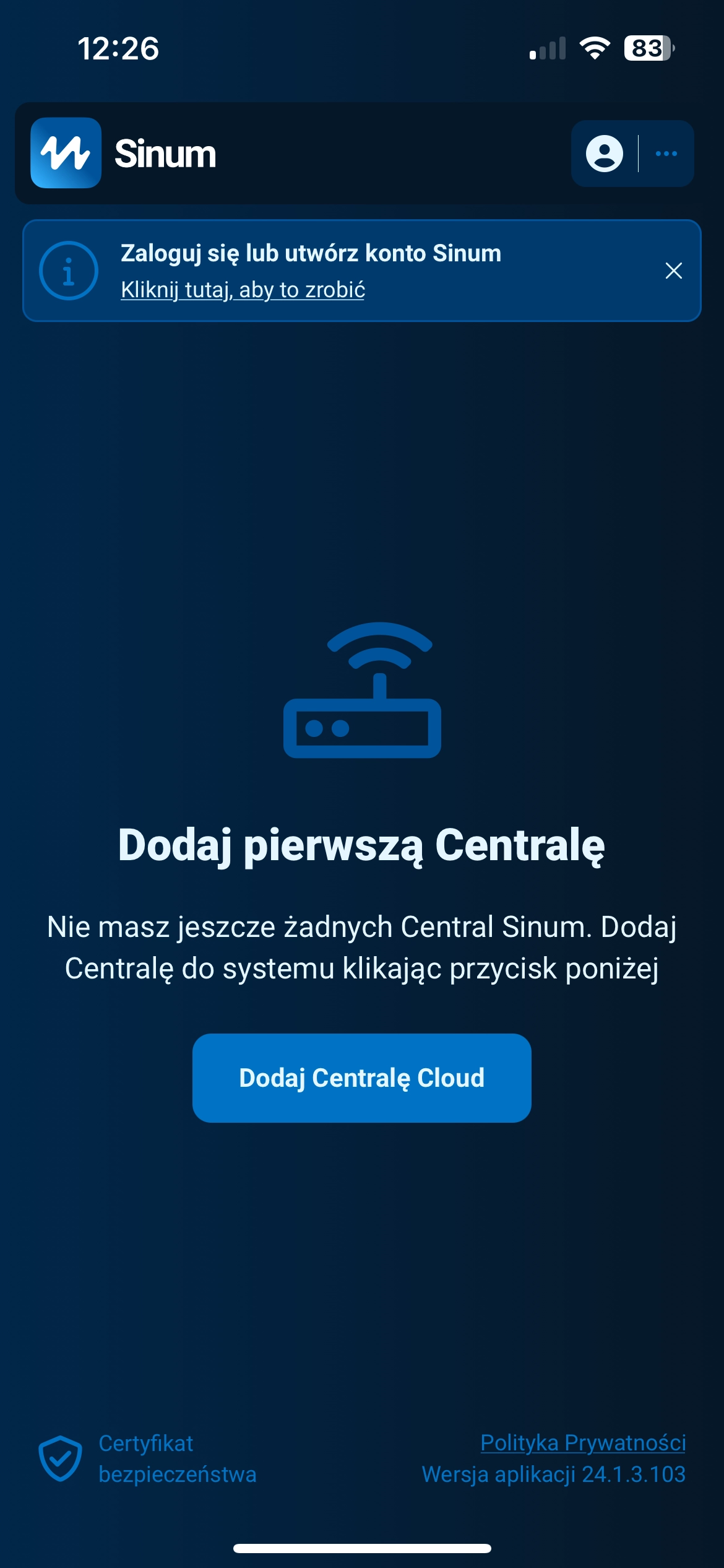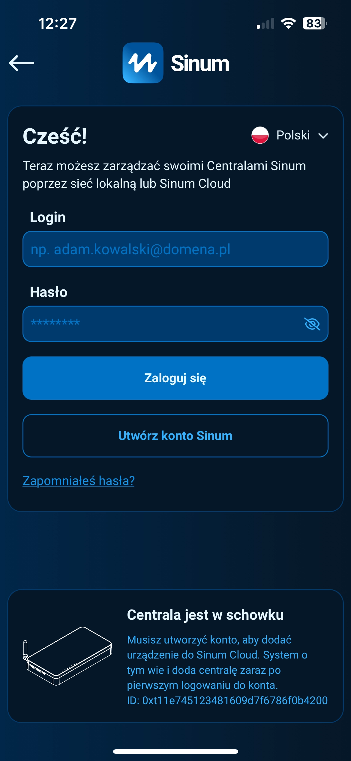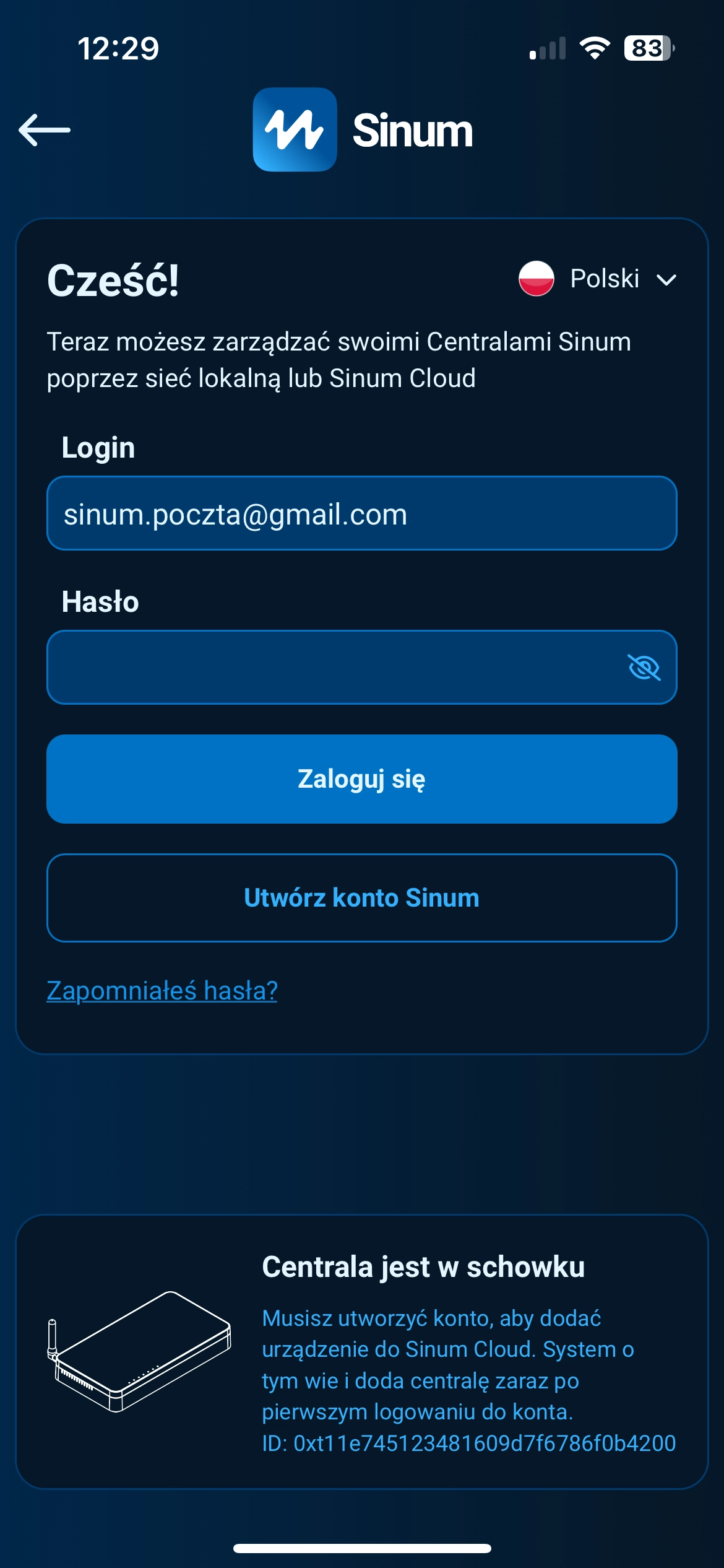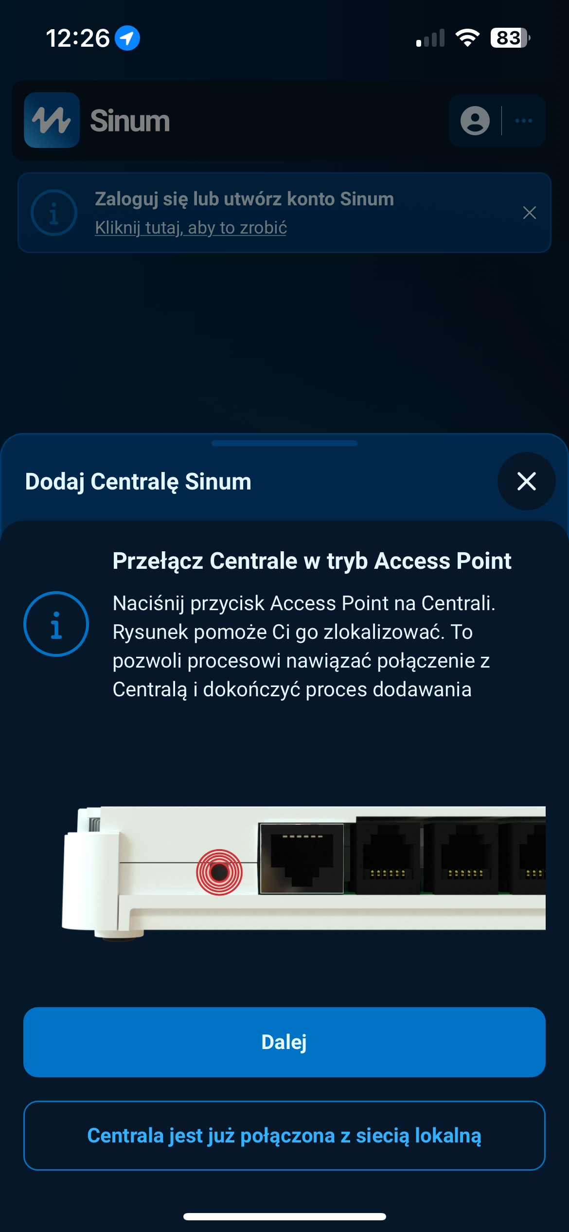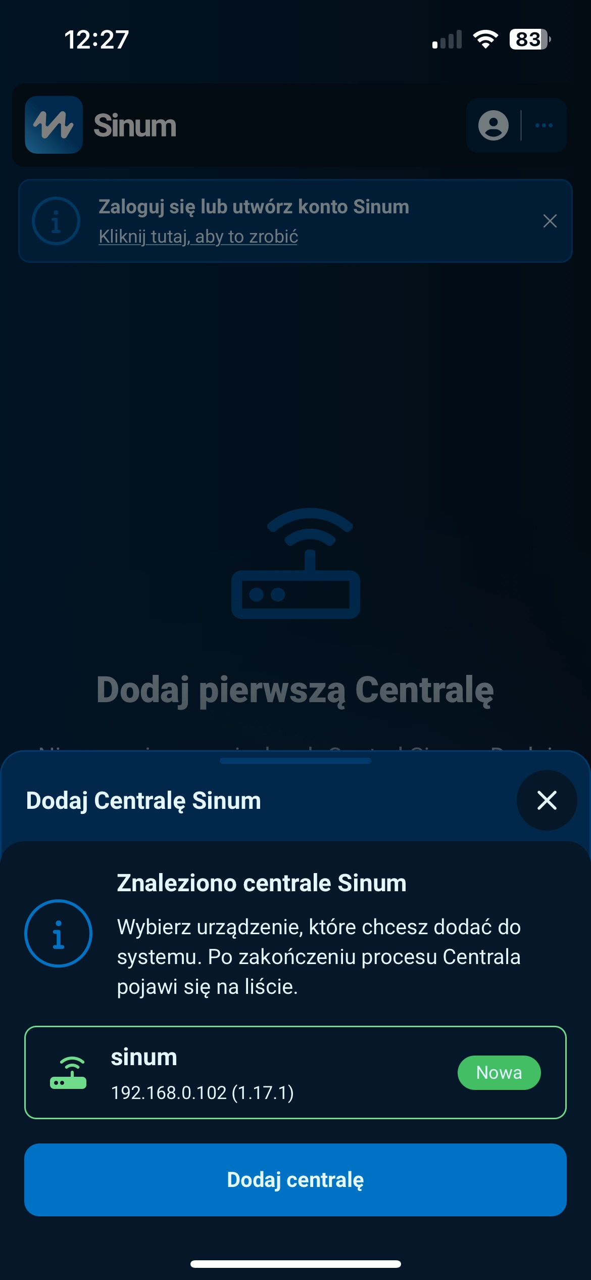 Twoja centrala zostanie dodana do konta Sinum Cloud.