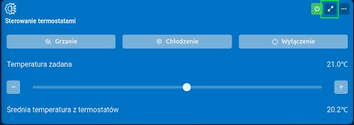 Aby wskazać, dla których termostatów urządzenie ma działać, otwieramy widok rozszerzony urządzenia, klikając w ikonę strzałek obok trzech kropek w prawym górnym rogu.