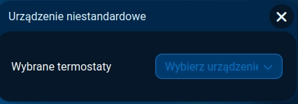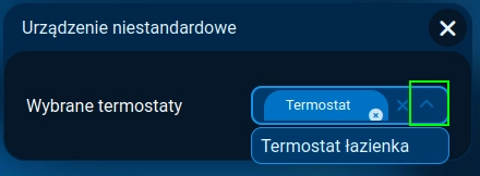 Klikając na Wybierz urządzenia, możemy dodawać termostaty do naszego urządzenia wirtualnego. Aby dodać kolejne termostaty, klikamy w strzałkę po prawej stronie elementu.