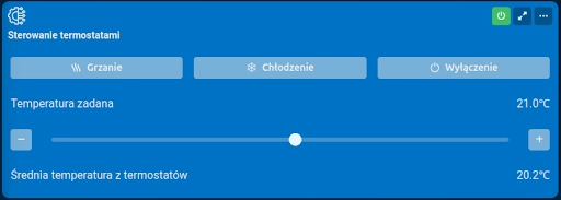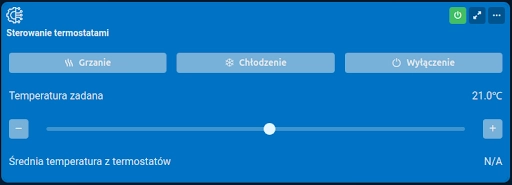 Po zapisaniu urządzenia, w ciągu minuty w polu tekstowym powinna pojawić się wyliczona średnia temperatura pobrana z czujników dodanych do termostatów.