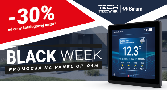 Z okazji BLACK WEEK przygotowaliśmy wyjątkową promocję na jeden z najczęściej wybieranych elementów systemu Sinum — panel kontrolny CP-04m. Do 30 listopada urządzenie można kupić w cenie niższej o 30% od ceny katalogowej. To świetny moment, aby rozbudować swój system smart home o wielofunkcyjny panel sterowania, który łączy estetykę, wygodę i szeroki zakres możliwości.