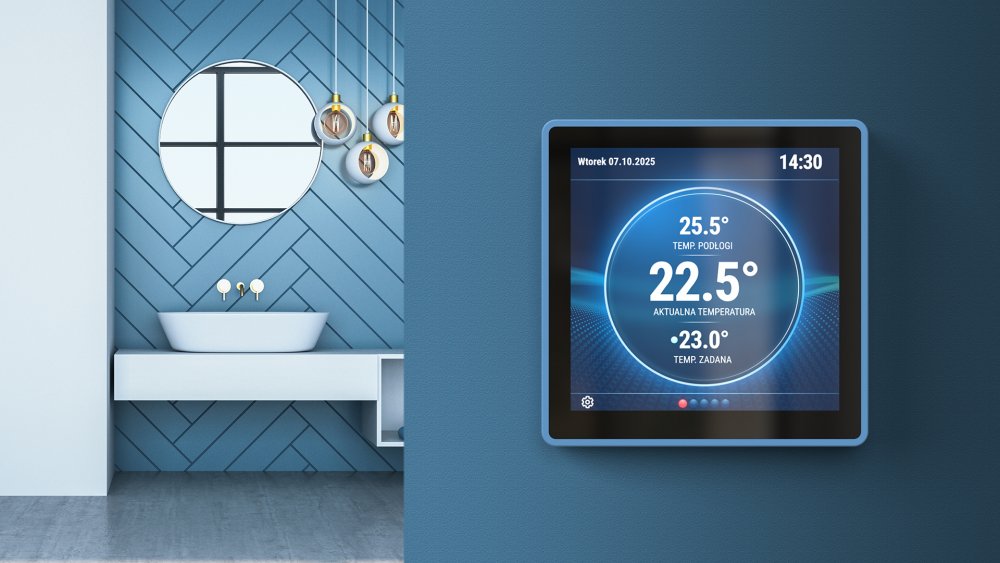 Czujniki dodatkowe: Dedykowane wejścia dla zewnętrznego czujnika temperatury podłogi oraz dodatkowego czujnika pokojowego (zalecany montaż poniżej lub obok panelu w odległości min. 10 cm).