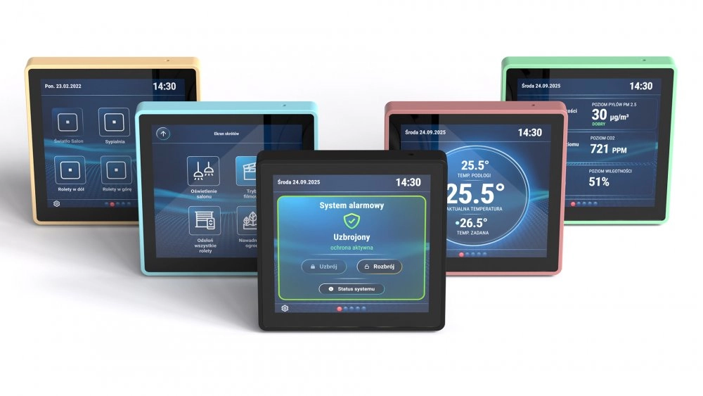 Personalizacja interfejsu: Konfiguracja parametrów wyświetlacza (jasność, wygaszanie, motywy) oraz zabezpieczenie dostępu kodem PIN (autoblokada).