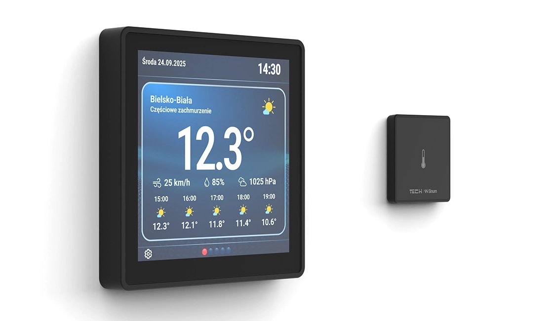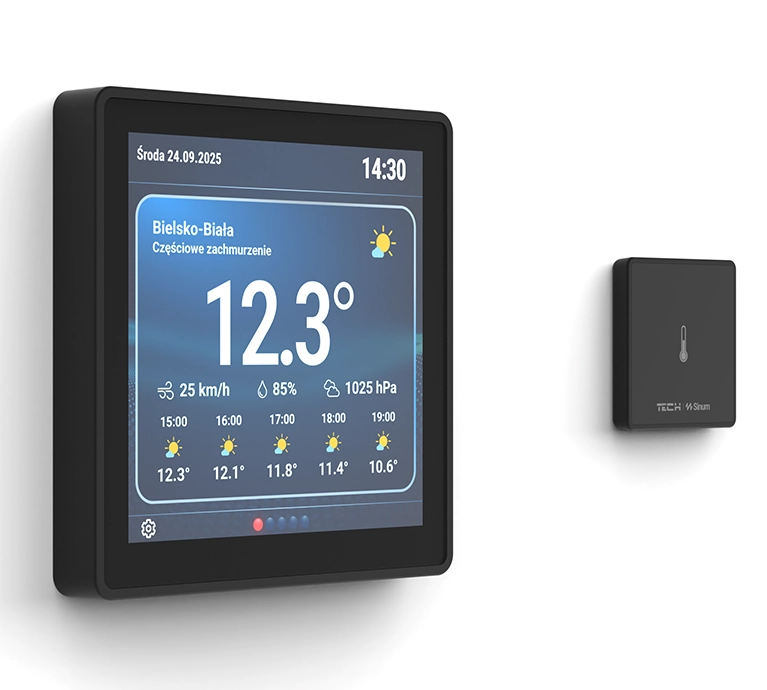 Czujniki dodatkowe: Dedykowane wejścia dla zewnętrznego czujnika temperatury podłogi oraz dodatkowego czujnika pokojowego (zalecany montaż poniżej lub obok panelu w odległości min. 10 cm).