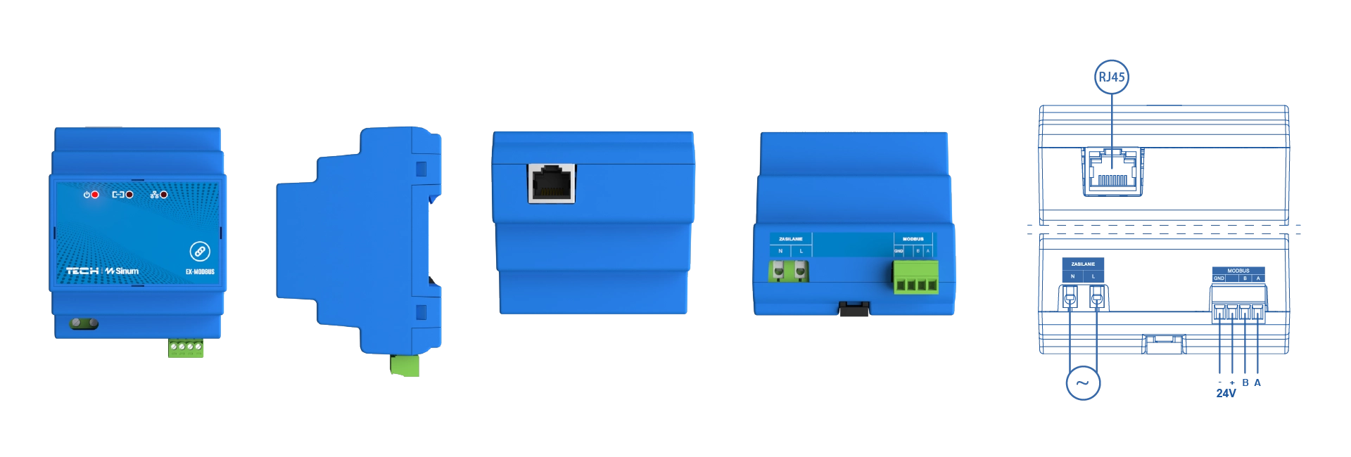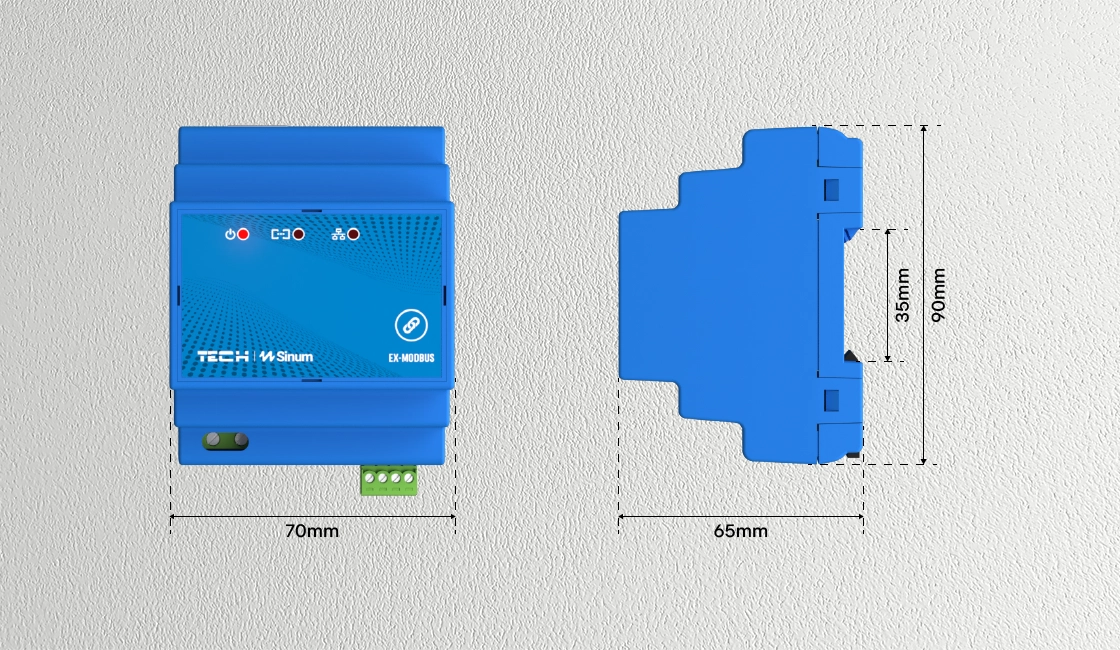 EX-MODBUS to urządzenie służące do rozszerzania zasięgu sygnału urządzeń MODBUS. Dzięki niemu możemy rozszerzyć obszar działania systemu. Jego zadaniem jest pobieranie informacje od podłączonych urządzeń MODBUS, a następnie przesłanie ich przez sieć LAN lub WiFi do urządzenia głównego - centrali Sinum.