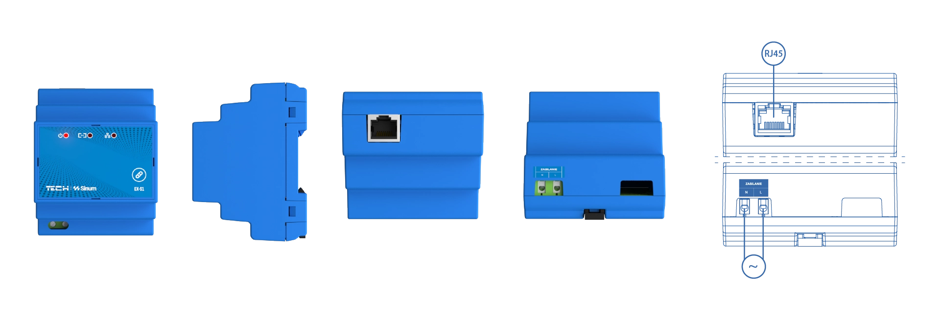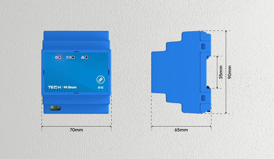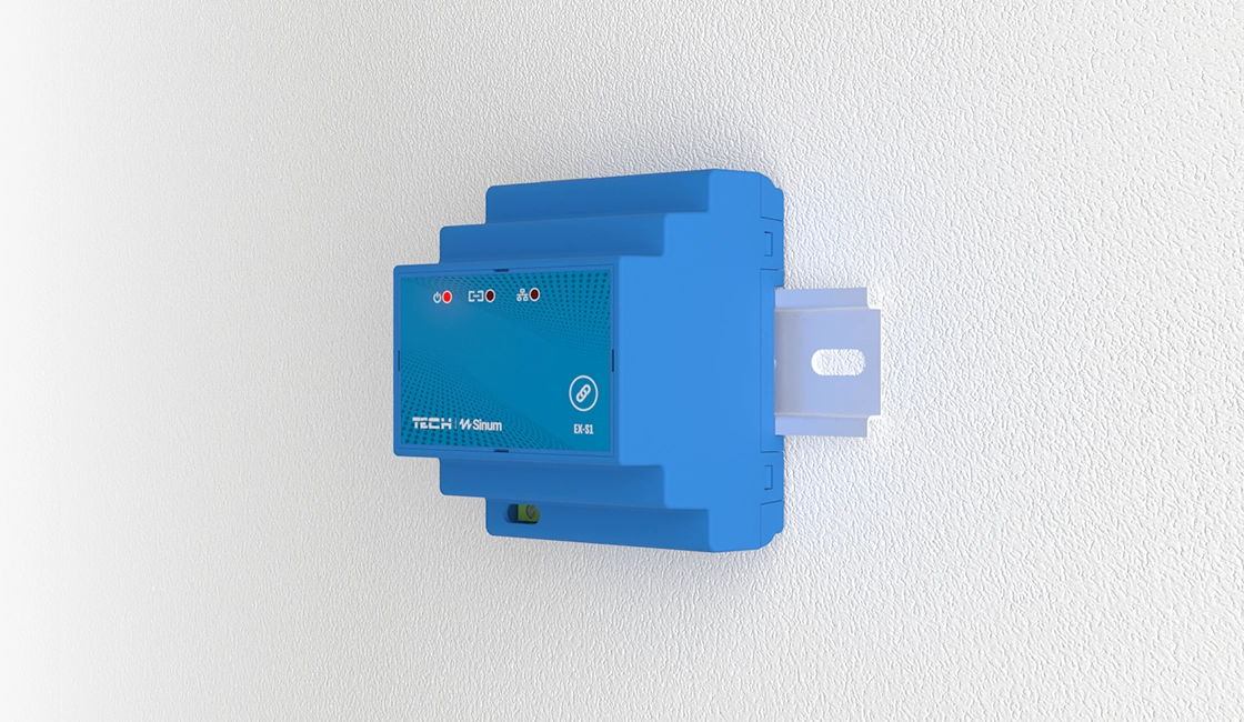 EX-S1 to urządzenie służące do rozszerzania zasięgu sygnału bezprzewodowych (WTP) urządzeń peryferyjnych. Dzięki niemu możemy rozszerzyć obszar działania naszego systemu. Jego zadaniem jest pobieranie informacje od podłączonych urządzeń, a następnie przesłanie ich przez sieć WiFi lub LAN do urządzenia głównego - centrali Sinum.