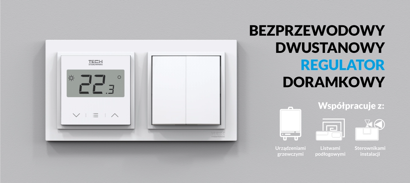 Bezprzewodowy dwustanowy regulator pokojowy doramkowy