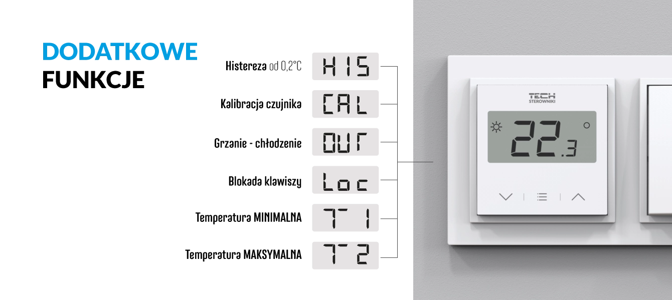 • sterowanie temperaturą pokojową +/- z dokładnością 0,1 st. C