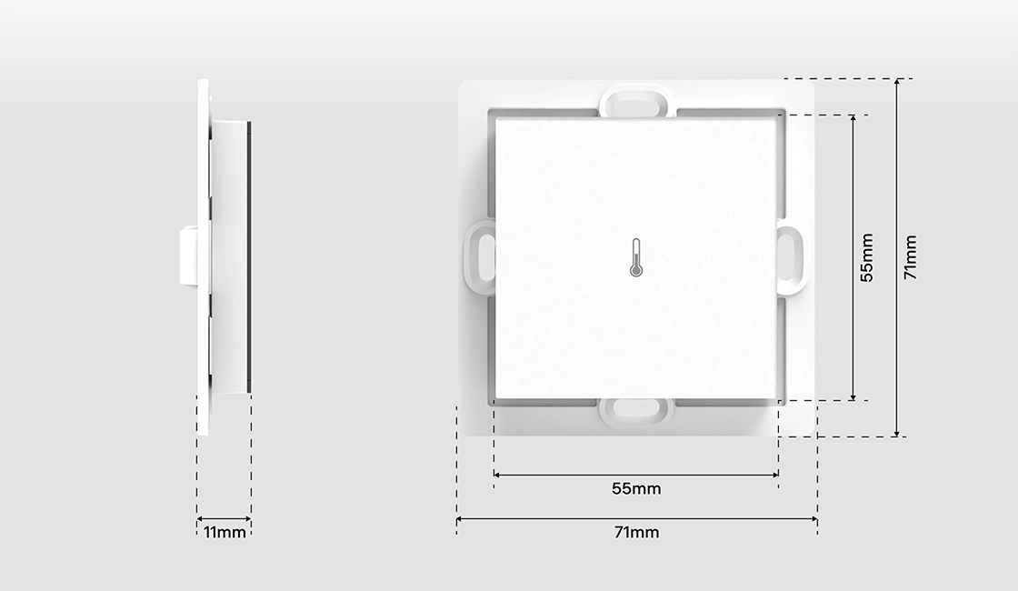 Nasze urządzenia szklane są montowane w dedykowanych szkalnych ramkach, które mają otwór montażówe o wymiarach 55x55mm. Dzięki tym precyzyjnym wymiarom, urządzenia doskonale pasują do standardowych puszek montażowych, zapewniając estetyczne wykończenie i idealne dopasowanie.