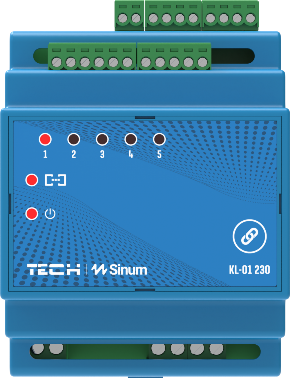 Funkcje: przeznaczony jest do sterowania pracą klimakonwektora. Praca modułu może być zarządzana poprzez MODBUS lub z aplikacji SINUM poprzez TECH WTP. Sterownik może obsłużyć instalacje 2- jak i 4-rurowe. Moduł obsługuje wentylator i zawory sterowane sygnałem 0-10V, lub napięciem 230V. Wyborusposobu sterowania podłączonego urządzenia należy dokonać w aplikacji Sinum lub poprzez panel P-KL1/P-KL3. Aktualizacja oprogramowania modułu można dokonać TYLKO poprzez port USB. Moduł może współpracować z przewodowymi oraz bezprzewodowymi czujnikami otwarcia okien, zasilanie 230V AC, Moduł nie może pracować samodzielnie