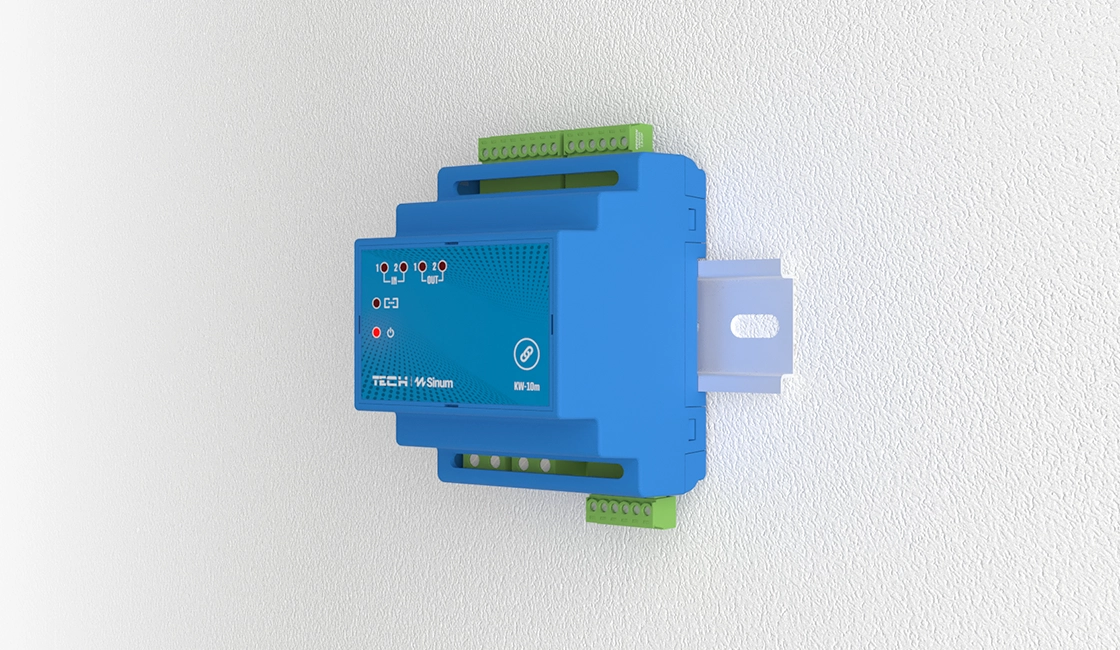 Łączność z centralą Sinum EH-01 odbywa się przewodowo za pośrednictwem magistrali Sinum SBUS .
