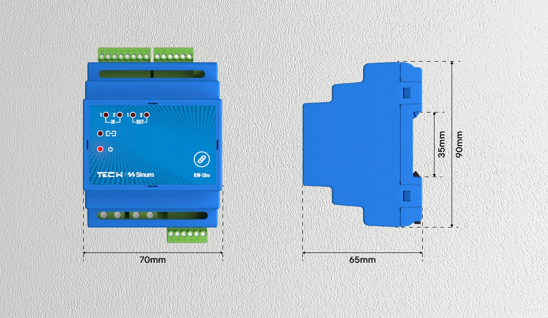 Moduły przekaźnikowe zostały zaprojektowane w sposób kompaktowy, aby idealnie pasowały do montażu na szynie DIN w szafach rozdzielczych. Dzięki precyzyjnie dobranym wymiarom, urządzenia doskonale mieszczą się w standardowych szafach rozdzielczych, co zapewnia estetyczne wykończenie i idealne dopasowanie.