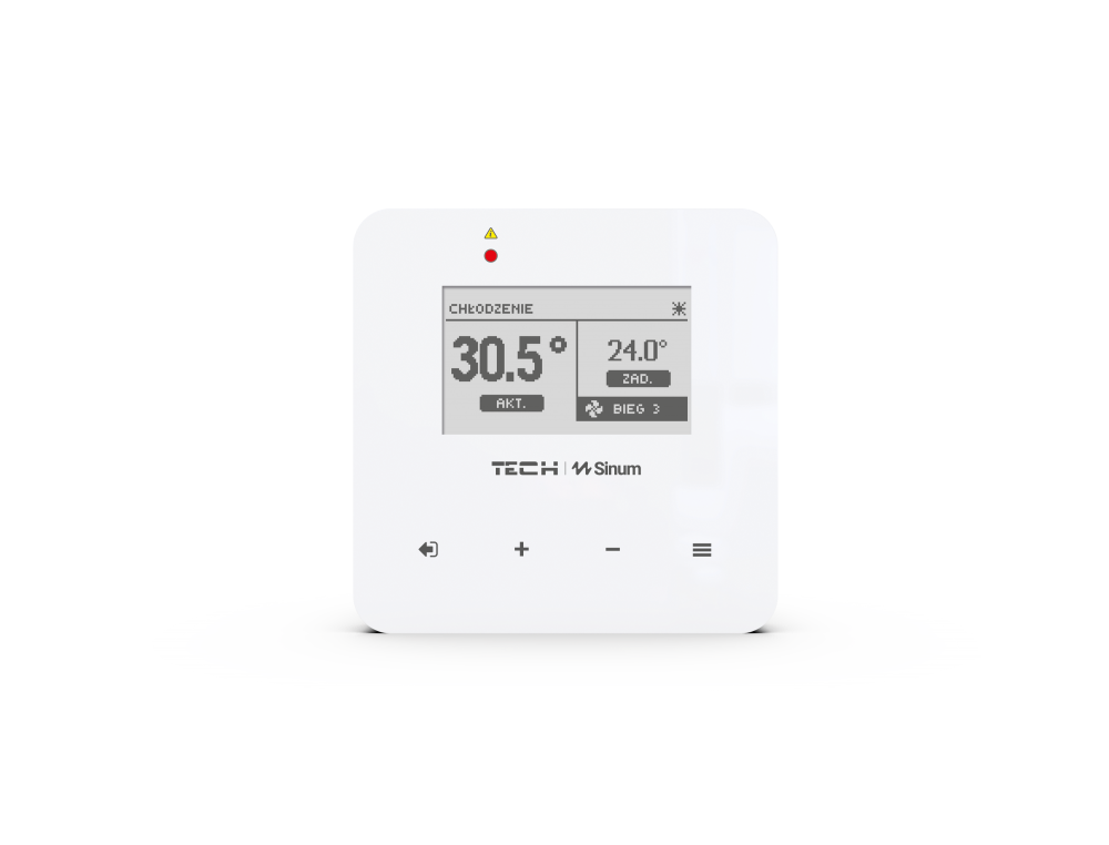 Funkcje: Panel przeznaczony do sterowania pracą klimakonwektora poprzez moduł KL-01m 230 lub KL-01 230 MODBUS. Panel komunikuje się z modułem przewodowo wykorzystując protokół komunikacyjny Modbus. Urządzenie wyposażone jest w czujnik temperatury oraz wilgotności. 3 tryby pracy -grzanie/chłodzenie/auto, wybór pracy wentylatora (auto, ręczny), możliwość zmiany biegu (I, II, III).