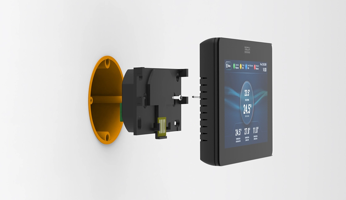 Jako intuicyjne centrum zarządzania systemem pompy ciepła, które łączy funkcjonalność z estetyką wykonania. Umożliwia wygodne sterowanie wszystkimi kluczowymi parametrami pompy, prezentując dane w przejrzysty i czytelny sposób. Wyświetlacz TFT, czuły ekran dotykowy oraz logiczne menu sprawiają, że codzienna obsługa staje się szybka, łatwa i przyjazna użytkownikowi.